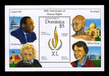 Original price was: ₹800.00.₹600.00Current price is: ₹600.00.DOMINICA 1988 – Mahatma Gandhi and Taj Mahal, 40th Anniversary of Human Rights, Miniature Sheet, MNH, S.G. MS 1201