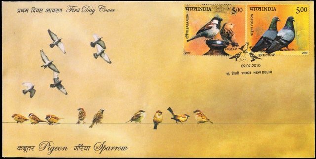 INDIA -09-07-2010-Pigeon & Sparrow-Set of 2 on First Day Cover