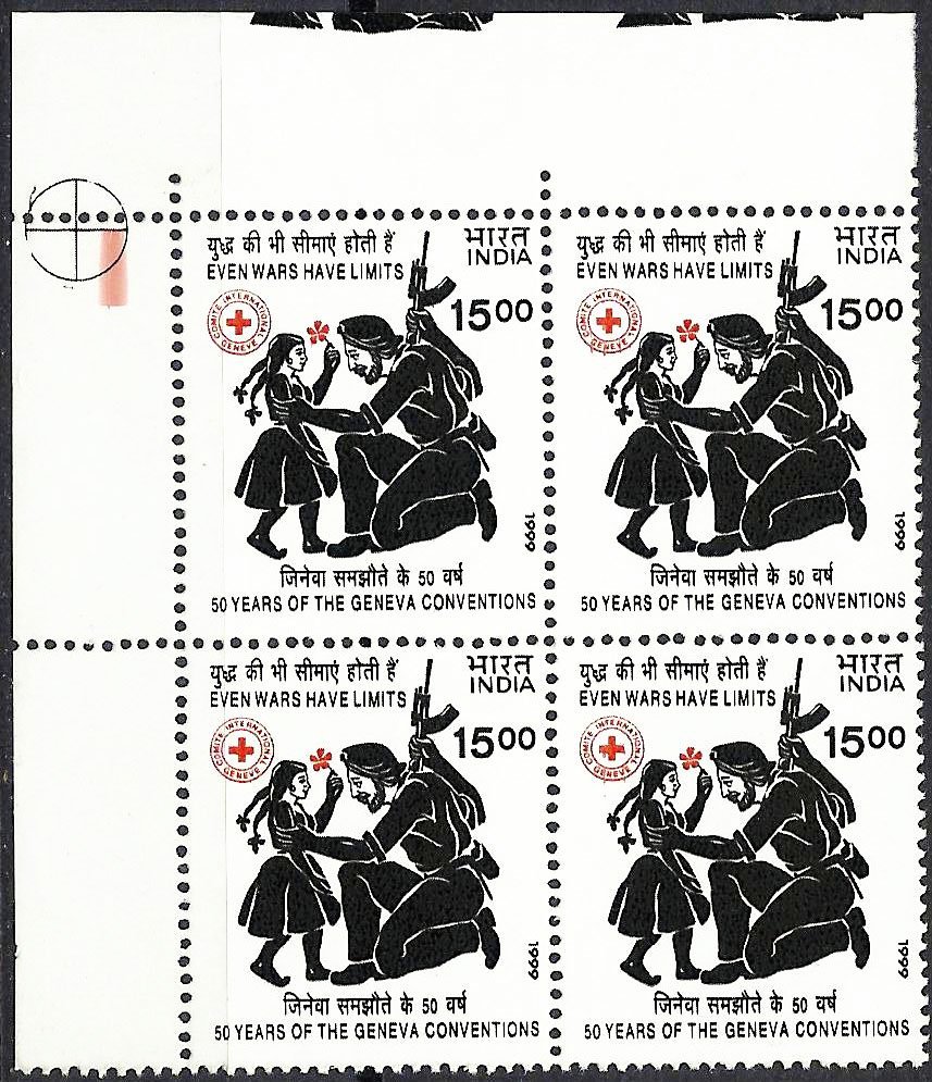 INDIA -12-08-1999, 50th Anniv of the Geneva, Sikh Soldier, Red Cross, Block of 4