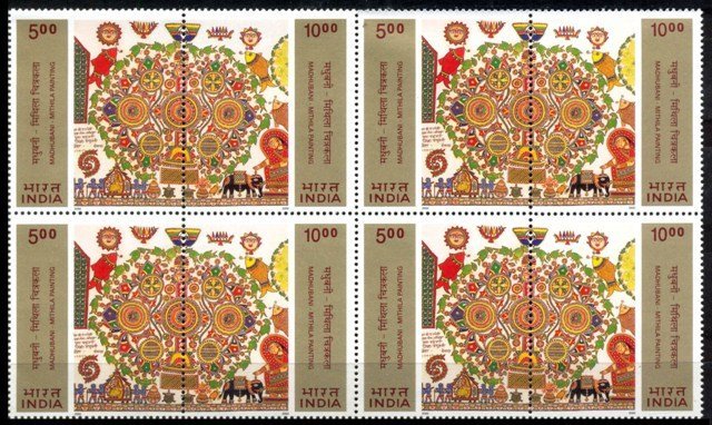 INDIA -15-10-2000, Madhubani Mithila Paintings Se-tenant Pairs