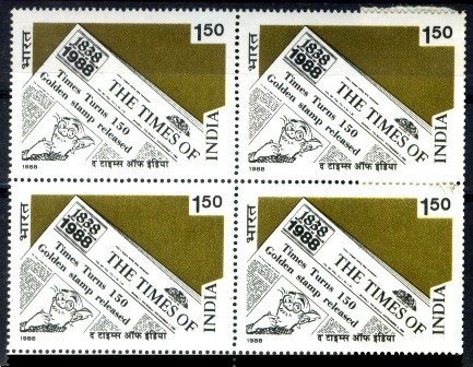 INDIA -3-11-1988, 150th Anniv. of Times of India, Re 1.50