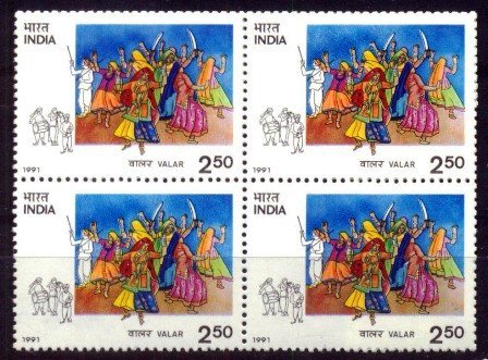 INDIA -30-4-1991, Tribal Dances-Valar Rajasthan, 2.50 Rs., Block of 4, S.G. 1448