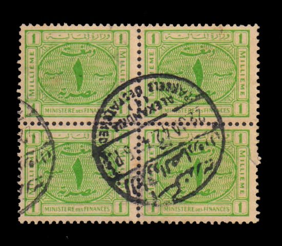ALEXANDRIA (EGYPT) Pre 1930 – French P.O. In Egypt, Ministry of Finances, Used Revenue Stamp, Block of 4 Stamps, Rare