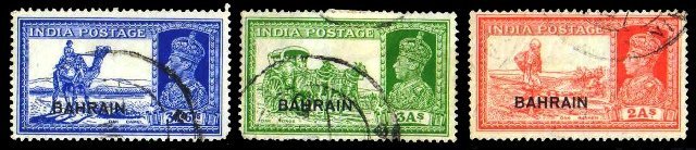 BAHRAIN 1938 – Stamps of India-K.G. VI Ovpt.-3 Different-Cat £ 37-S.G. 24, 26, 27