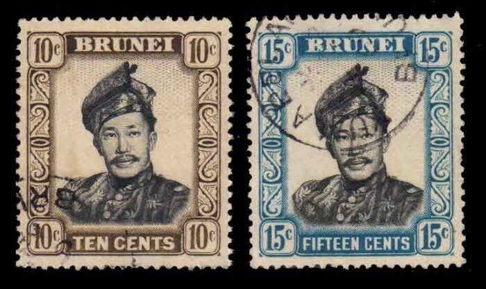 BRUNEI 1952 – 2 Different, Used. Sultan Omal Ali Saifuddin Portrait. S.G. 106 & 126
