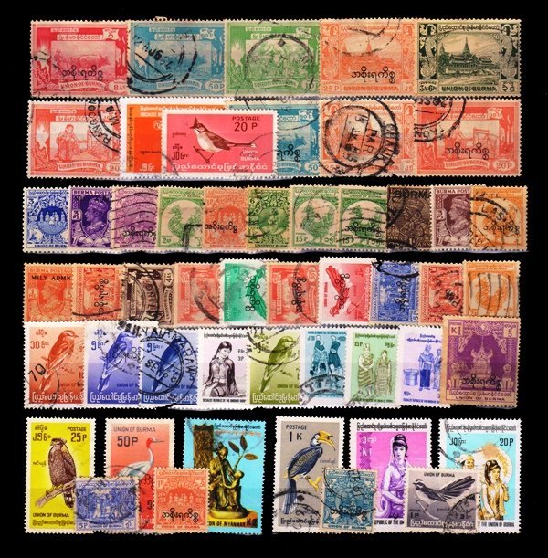Home Foreign Country Composition & Packets (A to Z) B-USED Burma- BURMA – 50 Different Small and Large Stamps