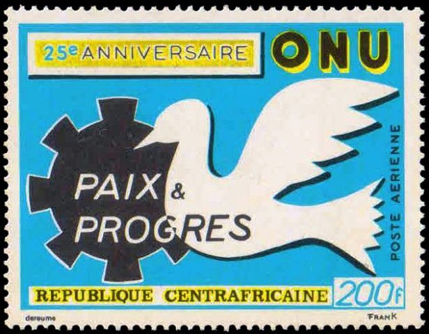 CENTRAL AFRICAN REPUBLIC 1970-25th Anniv. of UNO-Dove and Cog Wheel-1 Value-MNH-Cat ? 3-75 S.G. 227