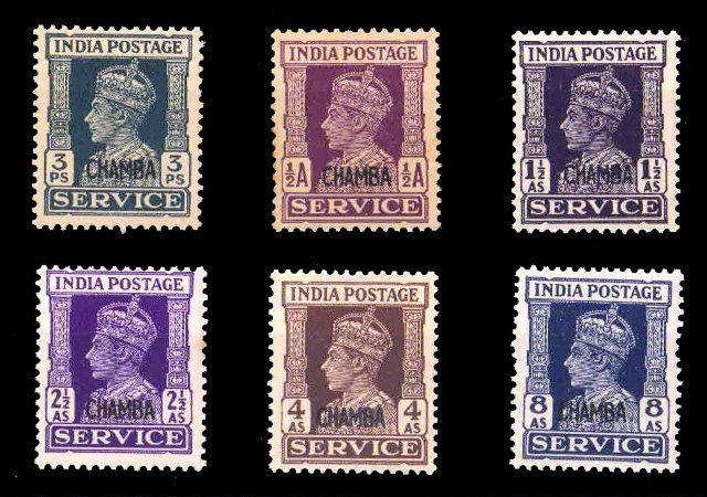 CHAMBA STATE 1940-K.G. VI-Official Issues-6 Different-MNH-S.G. 072, 074, 078, 080, 082, Cat ? 36-