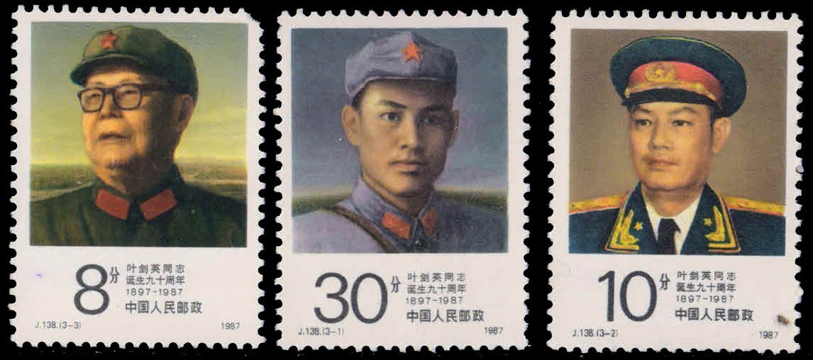 CHINA P.R. 1987-Ye Jianying, Revolutionary & Co-founder of People's Army, Portraits, Set of 3, MNH, S.G. 3491-93