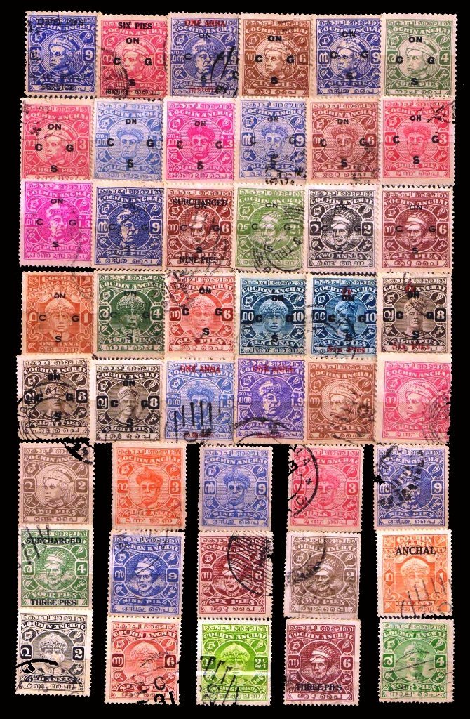 COCHIN STATE – 45 Different Used Stamps, Pre 1950