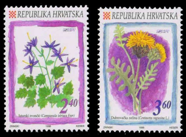 Home Foreign Mint Stamps Countrywise C-Mint CROATIA CROTIA 1996, Flowers, Istrian Bluebell, Corn Flower-Set of 2, MNH, S.G. 447-48