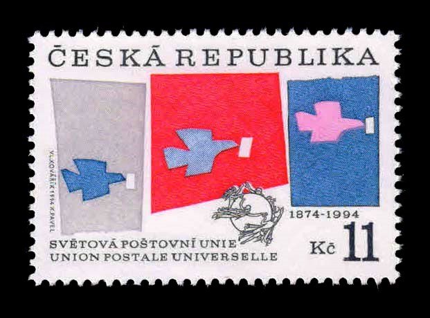 CZECH REPUBLIC 1994 – 120th Anniversary of Universal Postal Union (UPU), Stylised Carrier Pigeons, 1 Value Stamp, MNH, S.G. 54, Cat. £ 3.50