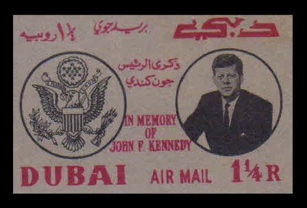 DUBAI 1964 – President Kennedy Memorial Issue. U S Seal. Black and Red On Grey. Imperf. 1 Value MNH. S.G. 49. Cat ? 3