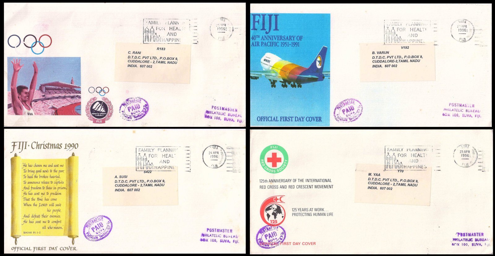 FIJI -11 Different Thematic Postly Used Official First Day Covers, Address to India-Family Planning for Health & Happiness, Cancellation