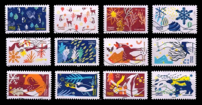 FRANCE 2021 – Christmas, Animals, Set of 12 Stamps, Used, S.G. 7129-7140
