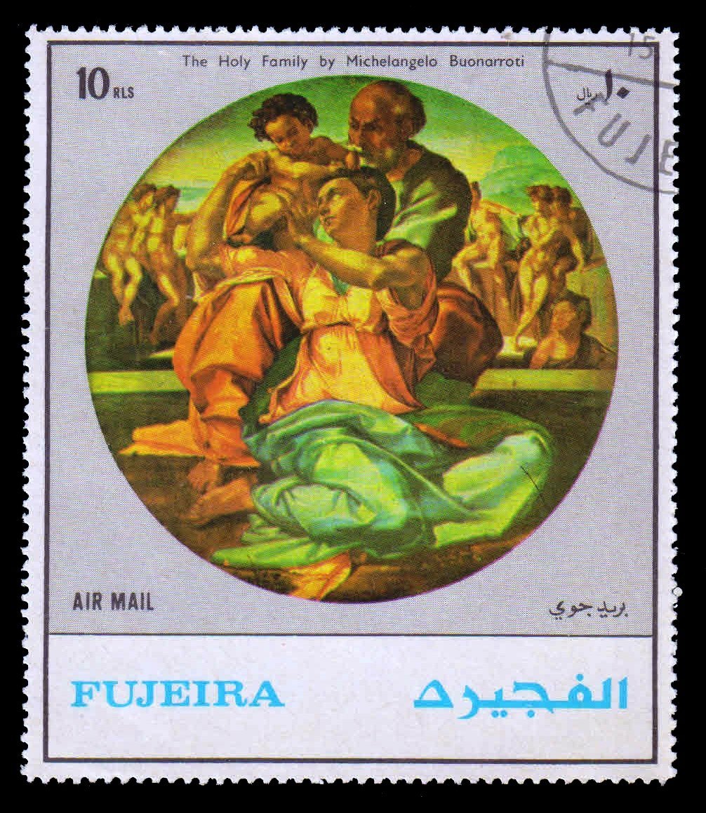 FUJEIRA – Paintings. The Holy Family by Michelangelo. Extra Large Stamp (92*77)mm