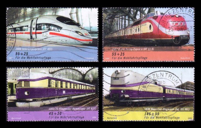 Home Foreign Country Composition & Packets (A to Z) G-USED Germany West- GERMANY 2006 – Trains, Railway, Welfare, Plus Value, Set of 4 Stamps, Used, S.G. 3437-3440, Cat. £ 18