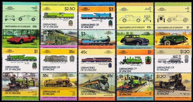 GRENADINES OF ST. VINCENT 1984 – Railway Locomotive, 8 Pairs Imperf with Side Margin, MNH, S.G. 311-326