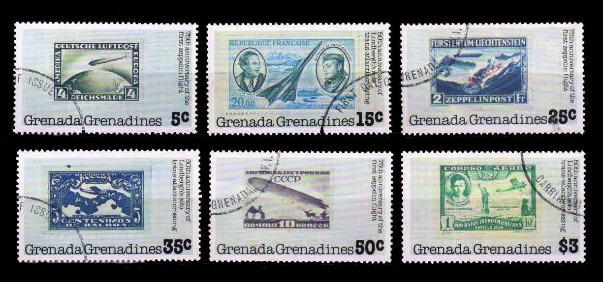 GRENADINES OF GRENADA 1978 – 75th Anniversary of 1st Zeppelin Flight, Stamp on Stamp, Set of 6 Stamps, Used