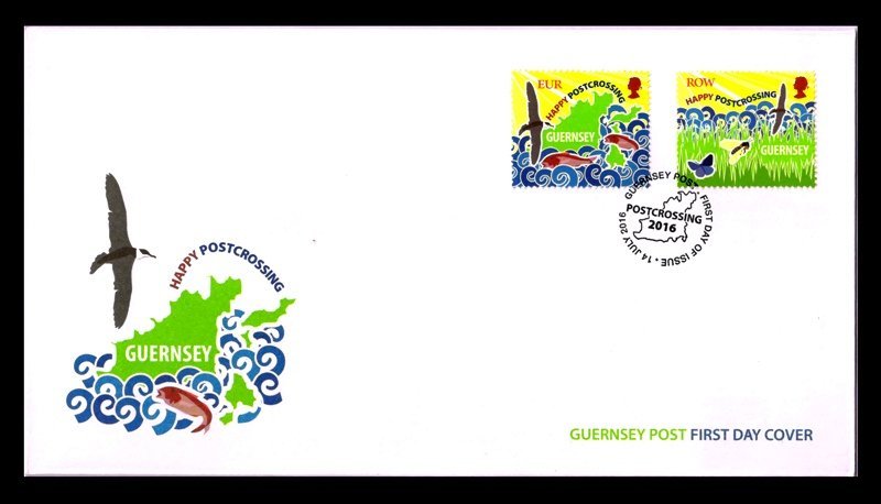 GUERNSEY 2016 – Post crossing, Connecting, People Worldwide Through Postcards, Set of 2 Stamps on First Day Cover, S.G. 1615-1616