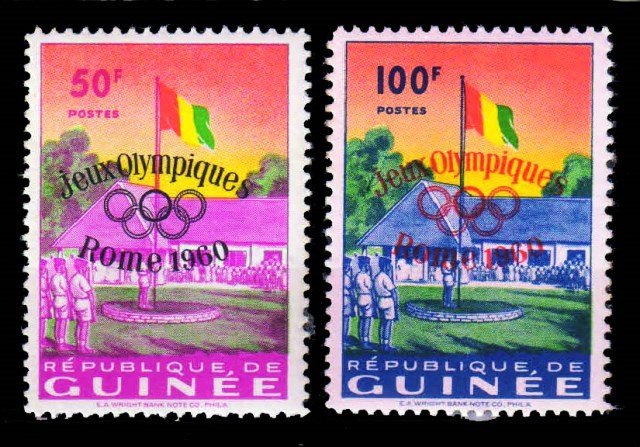 Home Foreign Mint Stamps Countrywise G-Mint GUINEA GUINEA 1960 – Olympic Games, Rome, Overprint, Set of 2 Stamps, MNH, S.G. 248-249, Cat. £ 20