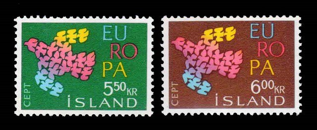 ICELAND 1961 – EUROPA, Doves, Set of 2 Stamps, MNH, S.G. 386-387