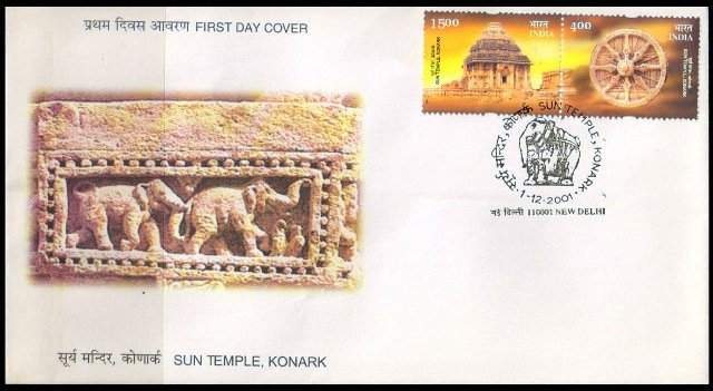 INDIA 1-12-2001, Sun Temple, Konark-First Day Cover, Elephant, Se-tenant Pair, on First Day Cover