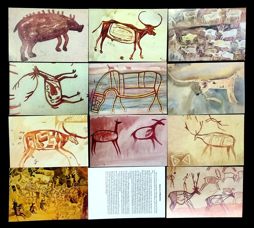Home India Postal Stationary - Postcard, Envelopes, Maxim cards & Letters India Picture Postcards INDIA – 11 Different Picture Postcards, Rock Art of Bhimbetka Paintings of Pre Historic Time, Most of the Paintings deal with the Relation of Man and Animals