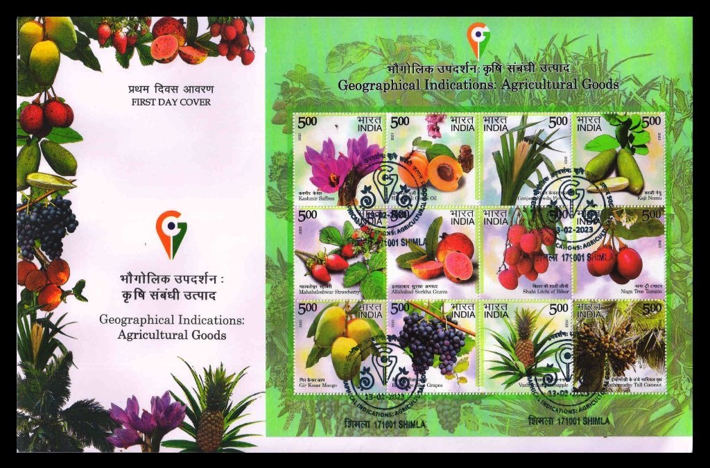 INDIA 13-02-2023, Geographical Indications, Agricultural Goods, Fruits, Miniature Sheet on First Day Cover