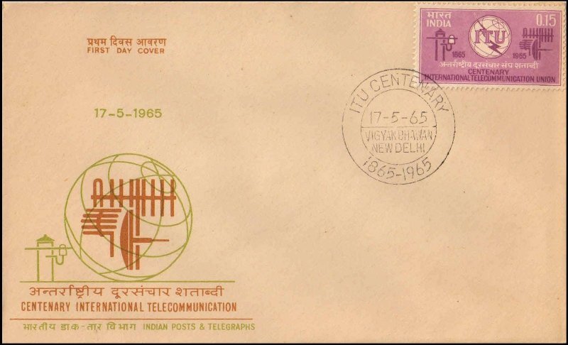 Home INDIA SPECIAL COVER 1960 TO 1965 INDIA 1965-Centenary of International Telecommunication-Vigyan Bhawan, New Delhi Cancellation