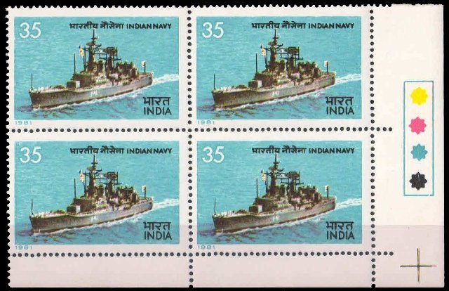 INDIA 1981-Indian Navy Day, INS Taragiri-Traffic Light Block of 4-4th Position