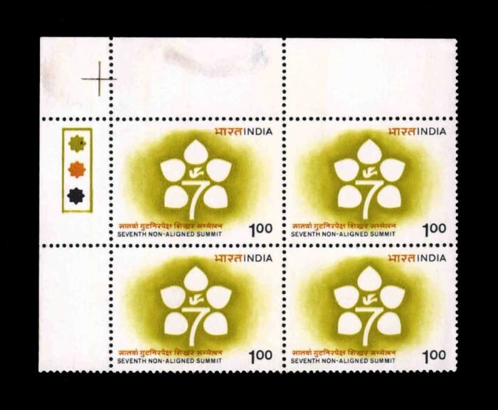 Home INDIA TRAFFIC LIGHT ISSUES 1983-T.L. INDIA 1983 – Non Aligned Summit Logo, Corner Block of 4 with Traffic Light, MNH