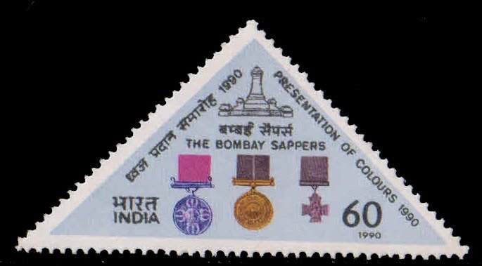 INDIA 1990-Gallentry Medals, Bombay Sappers, Triangular Shaped, 1 Value, MNH, S.G. 1402