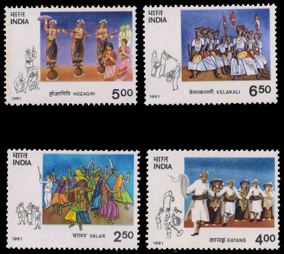 Home INDIA MINT SINGLES 1947 to Till 1991-Singles INDIA 1991-Tribal Dances, Set of 4, MNH, S.G. 1448-51