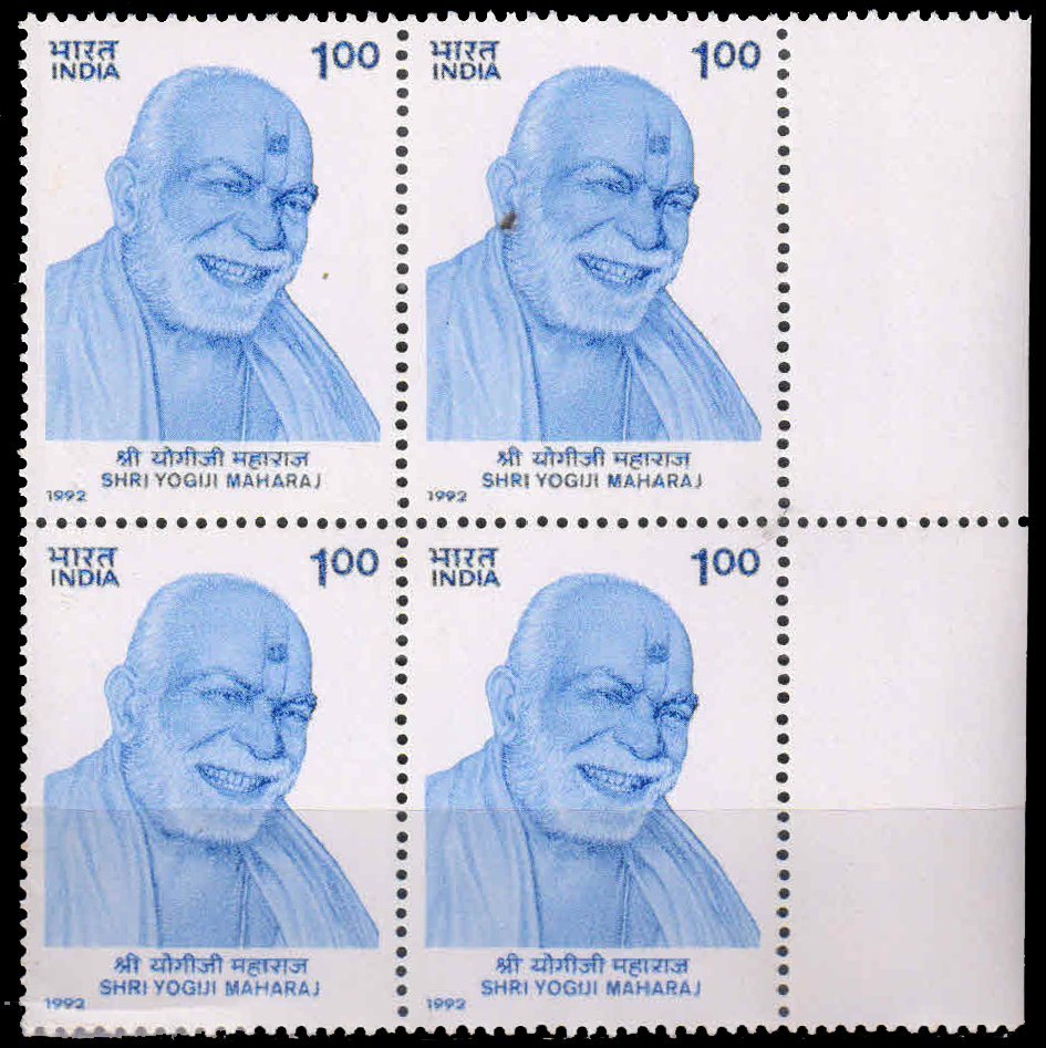 INDIA 1992-Shri Yogiji Maharaj, Social Reformer & Teacher, Block of 4, MNH, S.G. 1520