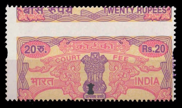 INDIA 20 Rs. Court Fee Revenue Stamp Miscut Error Variety Mint. Perforation Shift, Scare, MNH