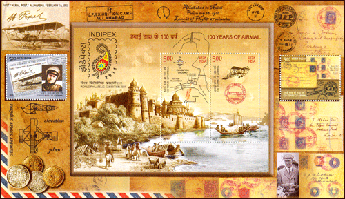 INDIA 2011 – 100 Years of Airmail, Miniature Sheet Of 4 Stamps