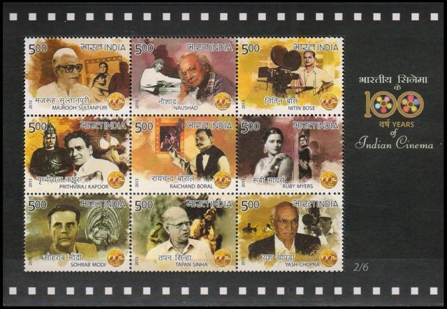 INDIA 2013 – 100 Years of Indian Cinema-Sheet of 9, 2nd Miniature Sheet