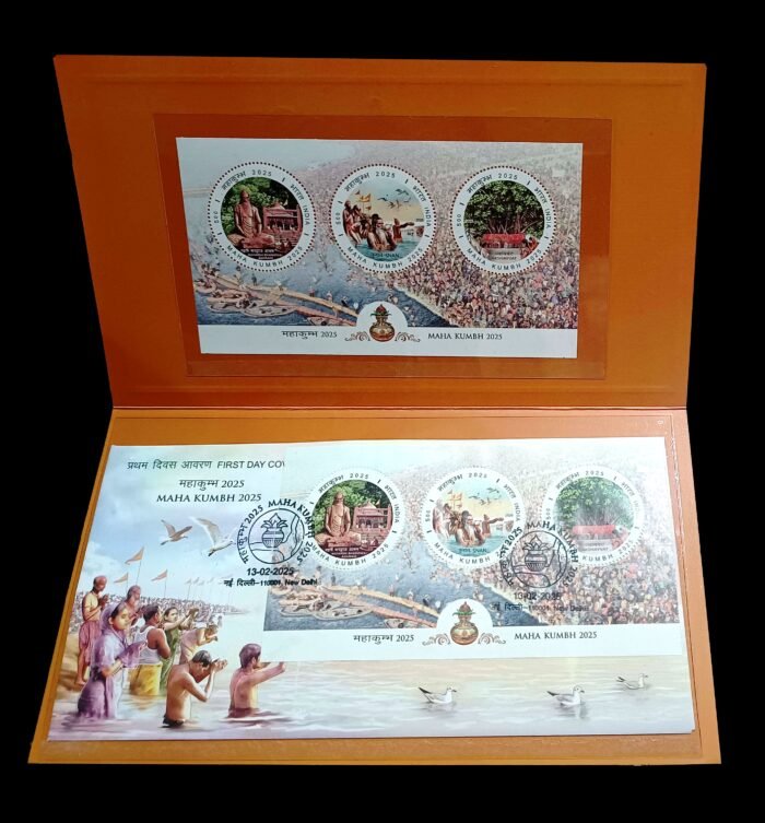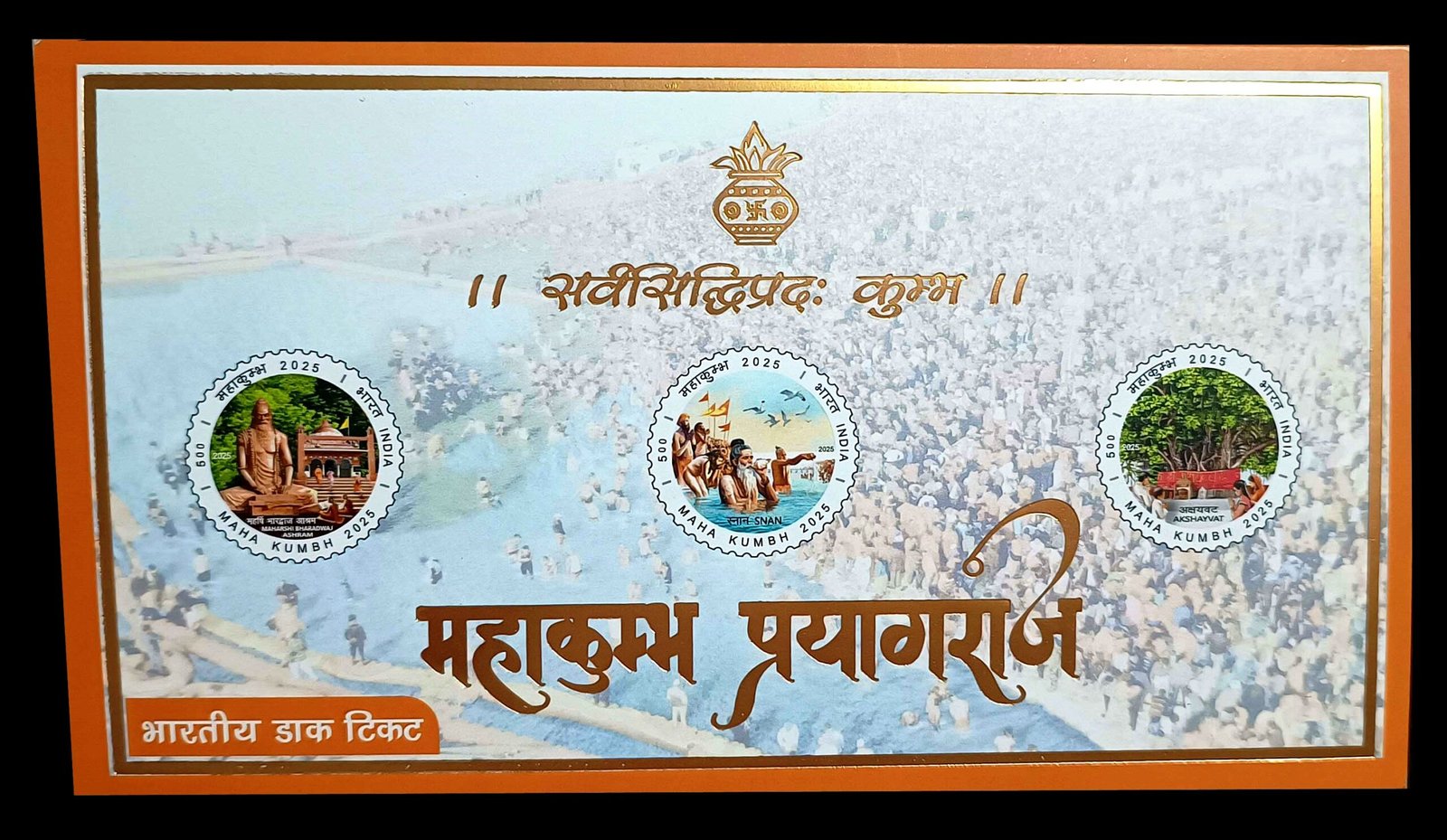 INDIA 2025 – Maha Kumbh, Presentation Folder with Miniature Sheet, Brochure and First Day Cover