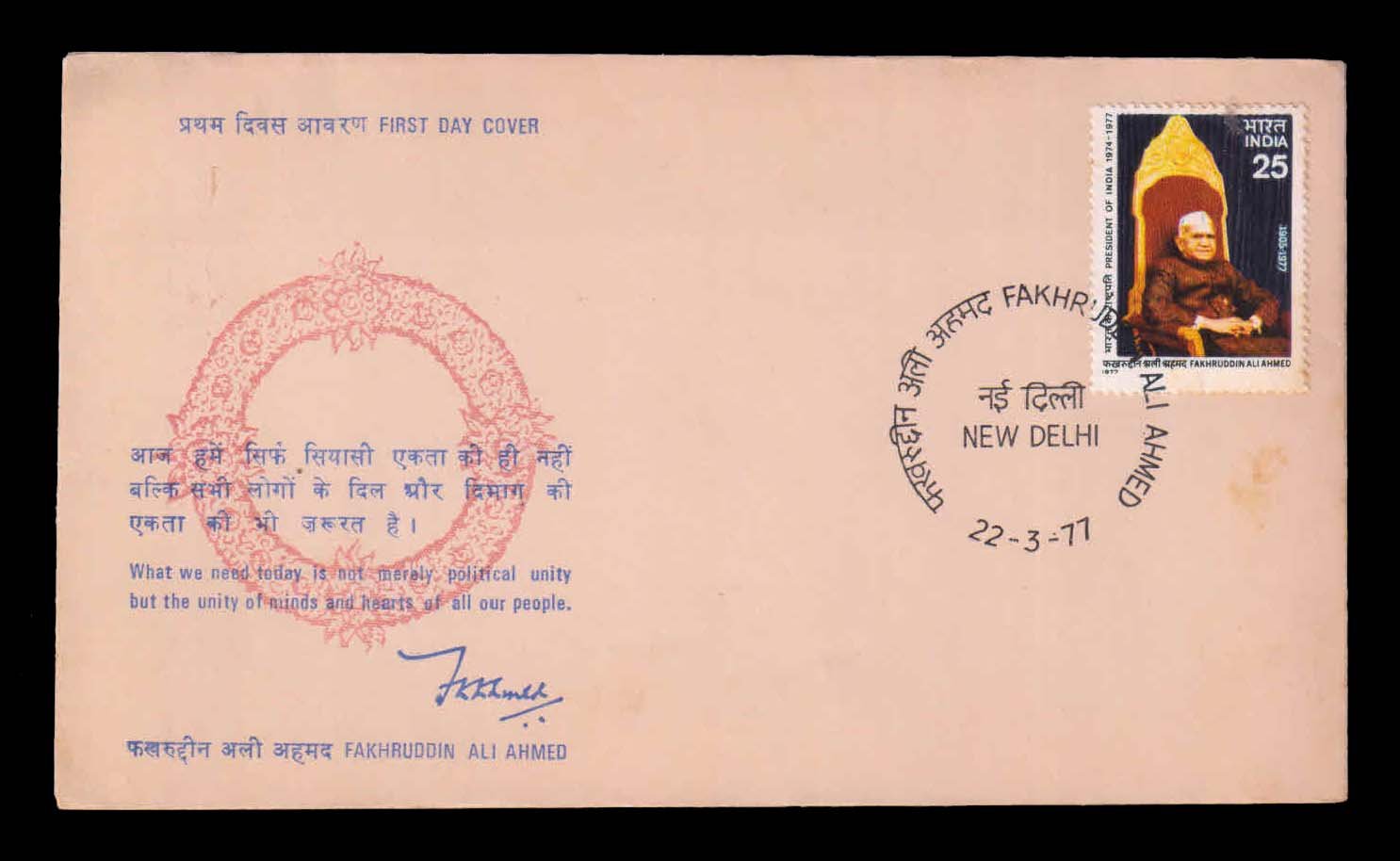 INDIA 22-3-1977, Fakhruddin Ali Ahmed 25P., First Day Cover