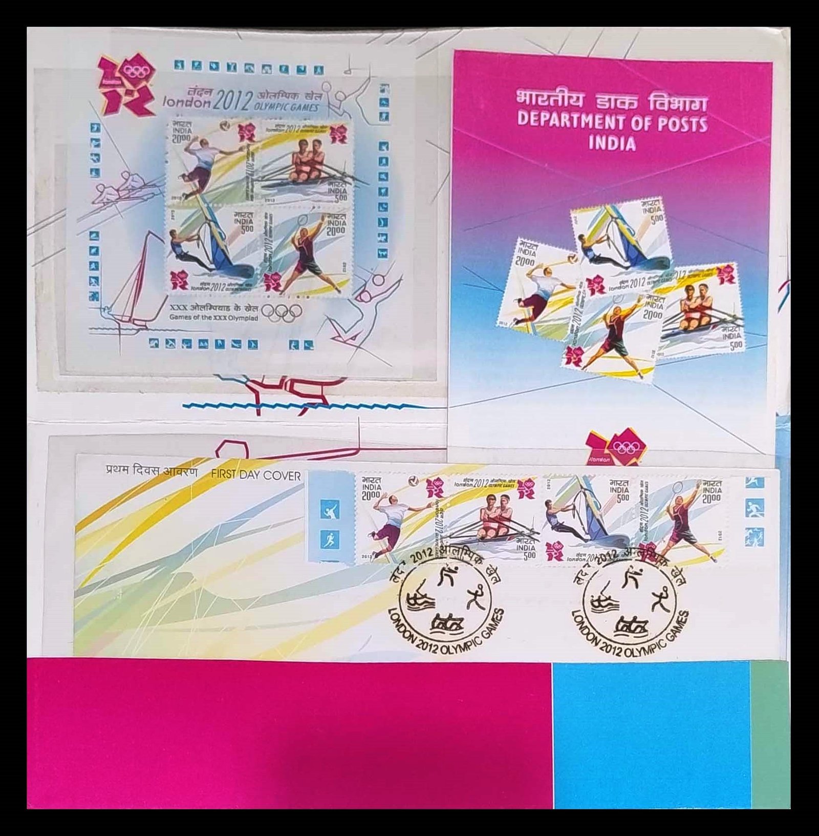 INDIA 25-7-2012, London Olympic Special Pack Issued by Department of Posts India, Contents: 8 Stamps, Souvenir Sheet, First Day Cover and Information Sheet