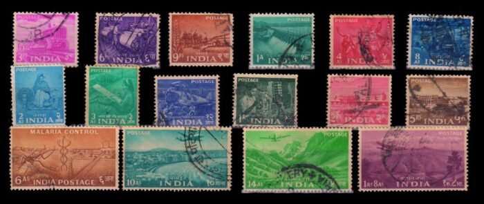 Home India Year Packs Used Year Packs INDIA DEFINITIVE 1955 – Five Year Plan, Agriculture and Multipurpose Projects, Set of 16, Used Stamps