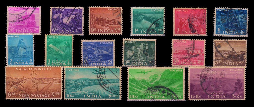 INDIA DEFINITIVE 1955 – Five Year Plan, Agriculture and Multipurpose Projects, Set of 16, Used Stamps