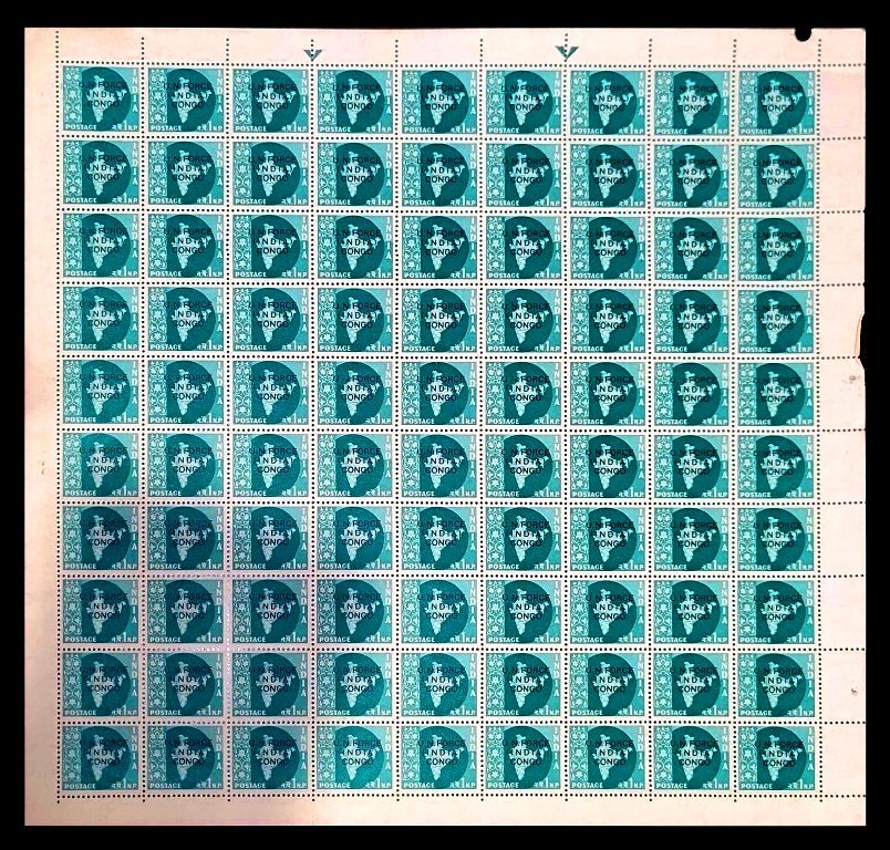 INDIA Military Stamp Sheet 1963 – Map Series, 1 N.P., Ashok Watermark, Overprint Indian Forces in Congo, Sheet of 90 Stamps, MNH