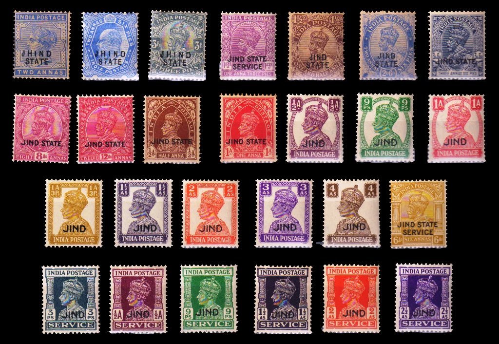 JIND STATE – 26 Different Stamps, Queen Victoria, King Edward, King George V and VI, MNH, Cat £ 125