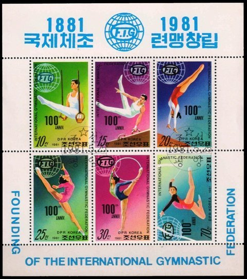KOREA NORTH 1981-Inter Gymnastic Federation, Exercise-Used Sheet of 6, S.G. N 2084-N 2088