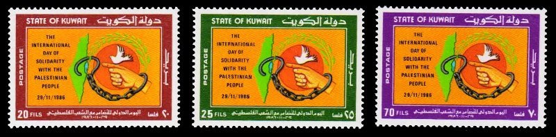 KUWAIT 1986 – International Day of Solidarity with Palestinian People, Dove, Map, Set of 3, MNH, S.G. 1117-1119, Cat. Value ? 11.51
