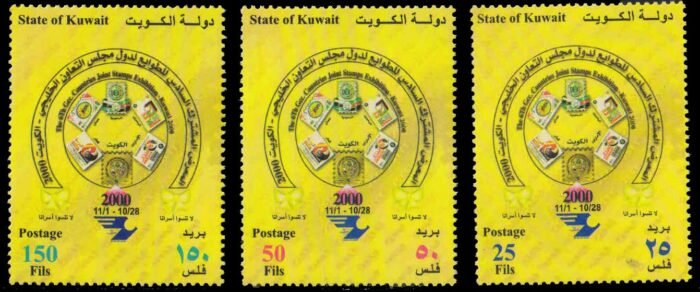 KUWAIT 2000-Gulf Co-operation Council, Emblem, Stamp on Stamp, Set of 3, NH, S.G. 1686-88-Cat ? 9-