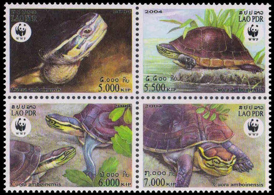 LAOS 2004 – Turtles-W.W.F, Block of 4, MNH
