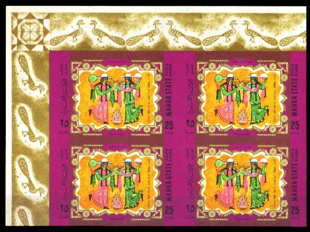MAHARA STATE-South Arabia 1967-Murai Painting-Corner Block of 4-Imperf-MNH